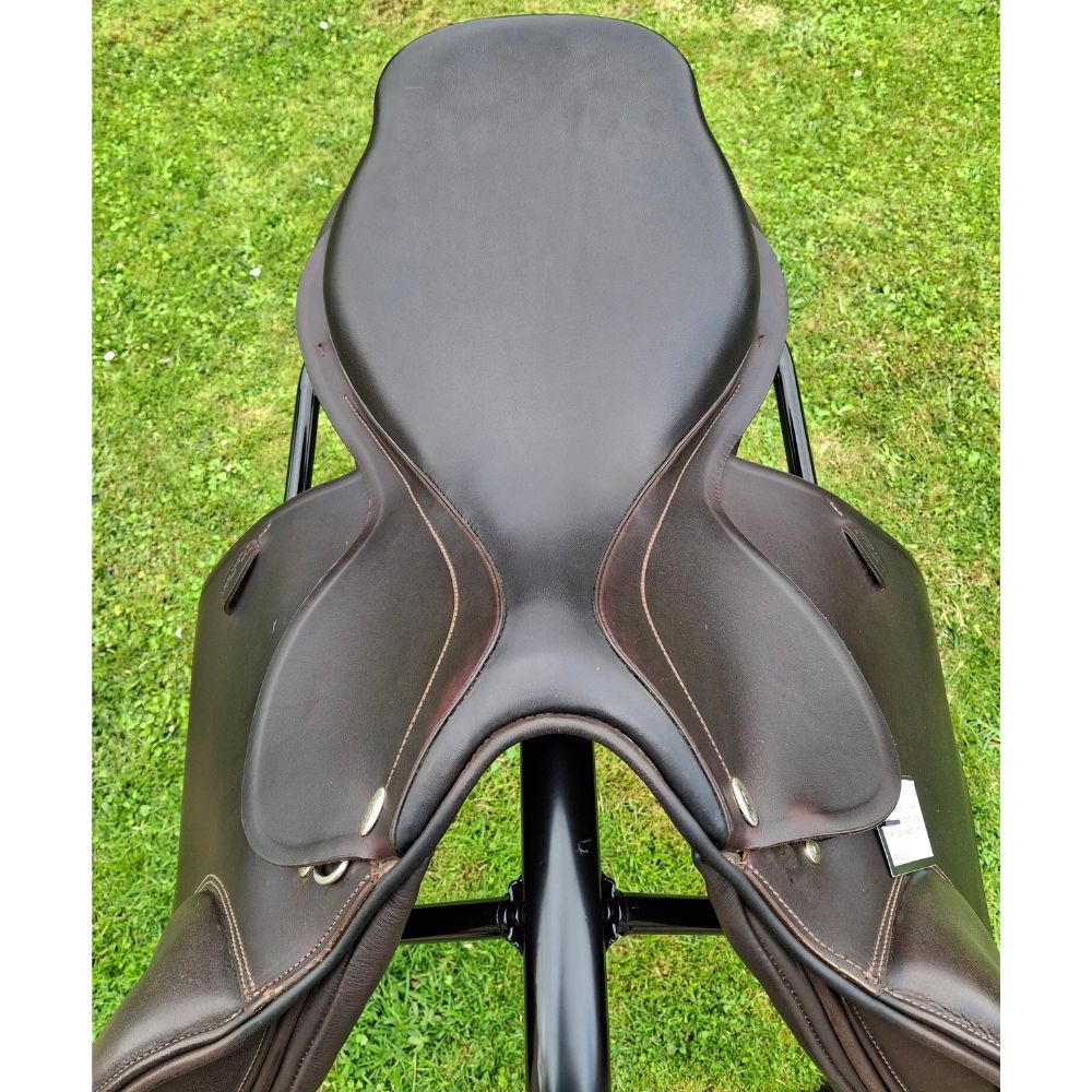 This saddle was manufactured in 2023 but is basically still brand new. It has been tried on horses but has never been ridden in. It is immaculate with no marks or blemishes. Clearing to make room for new stock.
